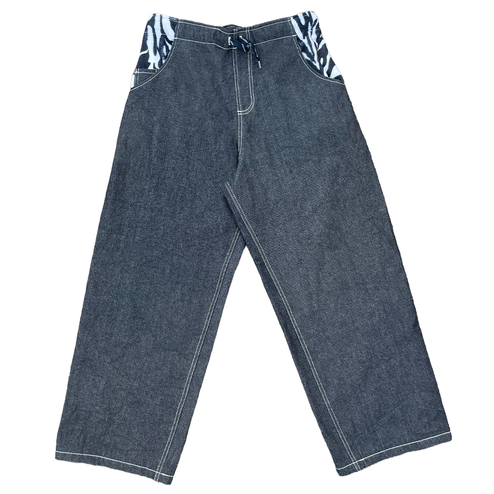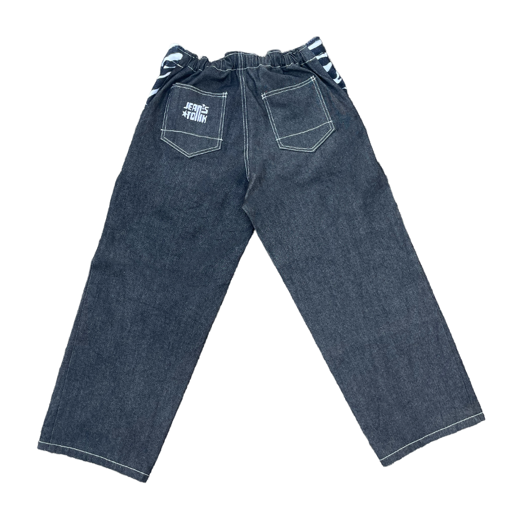 Poches zebre / Poche gousset / Broderie Jeans tonik / Tour de Taille élastique + lacet / Couture en Polyester Blanche